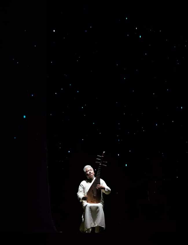 除了舞美,每一个节目都称得上相当用心了。开场秀intro是虚拟偶像星瞳在“国乐天王”方锦龙嘈嘈切切的琵琶旋律下“穿越时空”,她一改潮流装束,身着华服,娉婷起舞。身后墨甲机器人乐队为契合主题也换上古装化上黛眉用竹笛、箜篌、排鼓为现场观众增添乐律的层次性。时尚与传统,古典与现代,虚幻与真实,星瞳,方锦龙,墨甲,四川爱乐乐团,东方茉莉女子国乐团在演绎中激烈碰撞。
